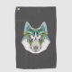 Illustration like graphic of the face of a wolf / husky with green & blue embellishments | customisable background colour
