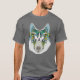 Illustration like graphic of the face of a wolf / husky with green & blue embellishments