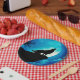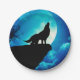 Wolf in silhouette howling to the full moon paper plate