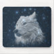 Wolf face with a fractalius filter digitally applied in a background of a starry night sky mouse pad