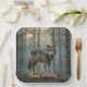 These birthday party paper plates feature a handsome wolf in a magical misty forest. Text can be changed or eliminated.
