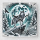 Wolf in Winter Forest Under Moonlit Sky Square Wall Clock
