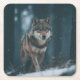 Wolf in Winter Square Paper Coaster