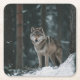 Wolf in Winter Square Paper Coaster