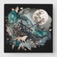 Wolf Landscape & Moon Teal Gold Square Wall Clock