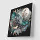 Wolf walking the landscape and Full moon in grey, teal and gold