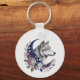 Wolf & Moon Keychain - Charming Mystical Wolf, Crescent Moon, Flowers