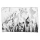 Wolf howling at the moon mountains forest graphic black white landscape sketch illustration Vintage