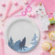 These plates are designed to compliment the Wolf Mountain Forest Boy Baby Shower Collection. Designed with a woodland forest wolf design that features a silhouette of a wolf in the mountains howling at the moon. Makes a great plate for a boy baby shower or for any woodland theme party.