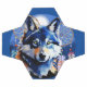Beautiful Wolf with deep yellow eyes, with Native American Dreamcatcters, in a Wild Blue Mountains Landscape and Full Moon. Original Vector Round Logo Design isolated on white Copyright BluedarkArt TheChameleonArt.