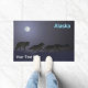 A cold, cruel, moonlit winter night. A hungry wolf pack hunts to stay alive. Text reading "Alaska" also appears in glowing blue and white. Add your own additional text.