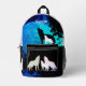 The alpha of the wolf pack is howling at the moon and the rest of the pack is following him on this full moon backpack. Can be personalised with anyone name.