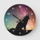 Silhouette of a wolf with the Aurora Northern Lights wall clock
