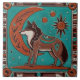 southwest native american wolf,southwestern decorative pattern style,orange brown teal blue,turquoise earth coyote,traditional folk art painting,south western america animals,southern outdoor wlidlife,usa tribal indian wildlife,nature wild natural sun,wolves desert animal moon