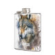 Wolf Watercolour Painting Hip Flask