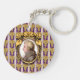 The original artwork by ZoeSPEAK on this Keychain features a portrait of the classical music composer Wolfgang Amadeus Mozart. The portrait is a profile set in an ornate oval golden frame. The frame hangs on a purple wallpaper background with golden bunches of grapes in rows, and vertical white and lavender stripes.