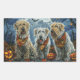 Unleash the spooky spirit with this eerie Halloween design featuring a pack of dogs under a dark, moonlit sky, surrounded by flying bats and glowing pumpkins. Perfect for those who love a touch of frightful fun with their furry friends!