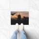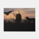 Two wolves and a flying raven on a silhouetted landscape and a clouds sunset.