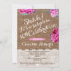 burlap lace effect invitation cards for a woman Surprise 80th Birthday Party. With watercolor flowers in plum tones.