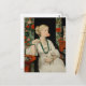 Woman sitting in an elegant chair holding her lap Dog and blowing a fun Pink Bubble Gum Bubble. This colorful Postcard would make a cute and fun birthday card. Contact us for further assistance in transferring to other products. Design is Copyright.