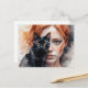 Woman and her black cat, Postcrossing Postcard, Postcard, Postcrosser, Postcrossing, woman, portrait, watercolor, generativecontent, AI Generation, cat, animal postcard, black cat