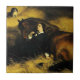 Tile featuring Sir Edwin Henry Landseer’s oil painting The Shrew Tamed, or The Pretty Horsebreaker (1861). An elegant woman in black clothing lounges next to a beautiful brown horse. A small dog watches in the background. They all sit in a barn of hay. A perfect gift for horse lovers and Victorian art.