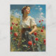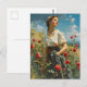The postcard captures a timeless scene: a woman, reminiscent of a bygone era, dons a farmer's attire, standing proudly amidst a sea of vibrant roses. Her clothing exudes simplicity, reflecting the rustic charm of agricultural life. The carefully tended roses create a picturesque backdrop, infusing the scene with a nostalgic, pastoral beauty. The postcard encapsulates an idyllic moment frozen in time, celebrating both the grace of the woman and the natural elegance of the blooming field.