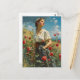Woman and roses Vintage Postcard