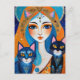 Woman and Two Cats Postcard