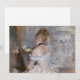 Woman at Her Toilette (1875) by Berthe Morisot is an elegant Impressionist painting capturing a woman in a private moment of self-reflection. The subject, dressed in a flowing gown, is seen from behind as she adjusts her hair in front of a mirror. Morisot’s delicate brushwork and soft colour palette emphasize light and movement, creating an intimate and atmospheric scene. This masterpiece showcases her signature Impressionist style, focusing on femininity, beauty, and everyday life.