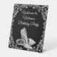 Woman Black Silver Birthday Party Welcome Table Pedestal Sign