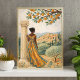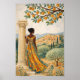 Woman by Column with Citrus Tree Illustration Poster
