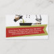 Retro-cool woman chef wearing chef's hat and jacket, pouring olive oil into a skillet with red and green text flags on this business card for Italian food personal or private chef, caterer or catering, Italian cuisine cooking classes and other culinary pros.