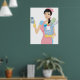A woman cleaning holding a lot of cleaning product. This design looks really effective on these Poster