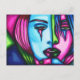 Woman Crying Face Abstract Original colourful Art postcard