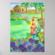 Woman Gardening Allium Watercolor Flowers Poster