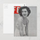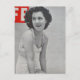 A beautiful woman from a magazine cover photo from 1939 poses in her swimsuit on the beach.