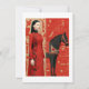 Woman in a red flowered dress & black horse