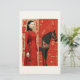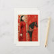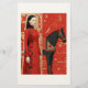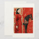Woman in a red flowered dress & black horse stationery