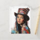 Woman in a Tophat Colorful Mixed Media Collage Postcard