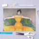 This design features a painting by Austrian artist Max Kurzweil (1867–1916). It shows an attractive woman in an elegant yellow dress draped across a patterned sofa. The original work of art was completed in 1899.