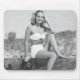 Woman wearing bikini sitting on log on beach, (B&W), (Portrait) | George Marks | AssetID: 57416977