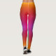 Woman in rainbow gradient leggings with a subtle pattern, from orange at the waist to blue at the ankles. She wears black sneakers, evoking a vibrant, dynamic style.