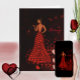 Beautiful Valentine's card for your loved one, girlfriend, boyfriend, wife, husband. This card features a woman in a red dress covered by hearts holding a red rose. The background is a dark black-to-red gradient with hearts floating around. You can customise this card for you by updating the text on the front and inside the card. You can print it or download it and send it electronically. This card is perfect for people in love. Happy Valentine's Day!