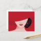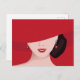 A retro art design of a woman with a red hat, red earrings and red lips. From a Public Domain Image.