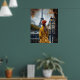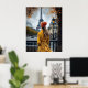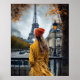 Woman in Yellow Bathrobe Admiring Eiffel Tower Poster