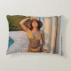 Woman in yellow bikini standing on brown brick flo decorative cushion