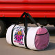 I actually had been searching other sites for a duffle gym bag and I couldn't find any. This one is just what I was looking for with all the features. The inside zip pocket, the outside mesh pocket and LOTS of room inside. Love the printing. Really like how the floral print turned out.
