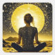 Woman Medicating by Full Moon on Starry Night Square Sticker