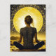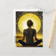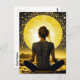 Pretty spiritual postcard. Mystical ai art showing an ethereal scene of a woman meditating before a full moon on a starry night.